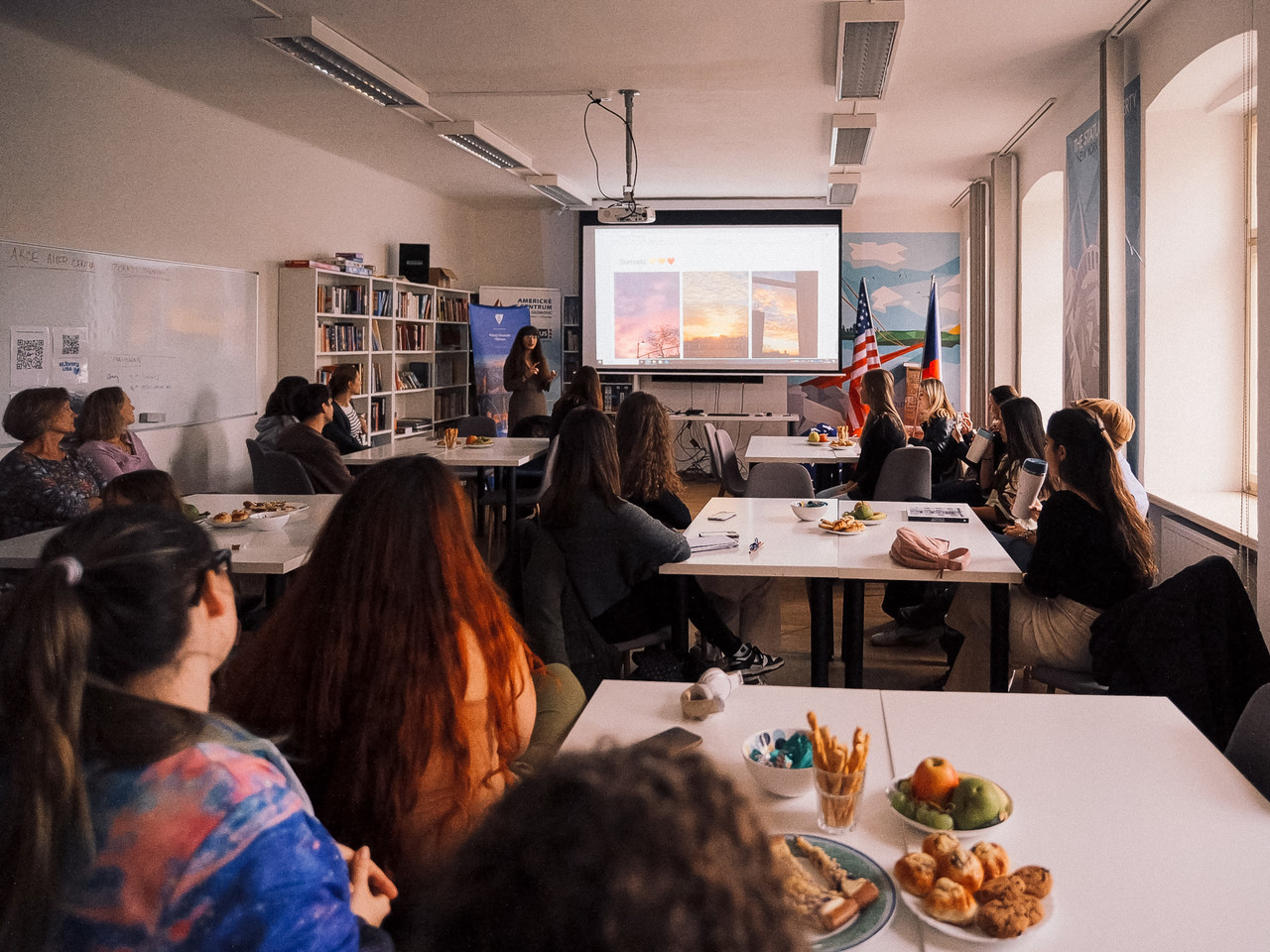 Ve středu 15. října odpoledne jsme otevřeli dveře našeho oddělení a uspořádali přátelské setkání s koordinátory programu Erasmus a také při této příležitosti představili Merrillův program, který nabízí stipendia pro studium na partnerských univerzitách v USA. Publikum zcela okouzlily absolventky Merrillova programu sdílením svých zkušeností se studiem v USA. Výzva pro podávání přihlášek na Merrillův program v akademickém roce 2026/2027 je aktuálně otevřena až do 8. prosince 2025. Momenty ze setkání zachytil fotograf Vojtěch Kmenta.