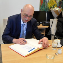 Before the meeting at the Archbishop's Palace, Karel Eliáš accepted an invitation to the Faculty of Law, where, among other things, he signed the chronicle. The faculty has been keeping it since its restoration in 1991.
