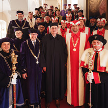 The honorary doctorate was awarded to Karel Eliáš on the recommendation of the Faculty of Law's Scholarly Board and by decision of the University's Scholarly Board. He received it at a ceremony in the Archepiscopal Palace during a gathering of the academic community.