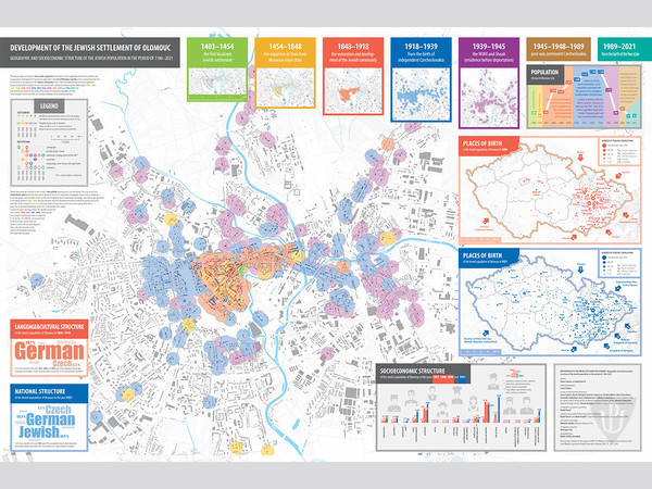 “Our map was published as early as 2022, but it was not presented to the academic community until the recent article in the Journal of Maps, on the basis of which it received the award. We are very pleased about this. The map provides a comprehensive overview of the development of Jewish settlement in Olomouc from the 12th century to the present. It captures changes in the spatial distribution of the Jewish population in relation to historical and political shifts and supplements this with an analysis of migration patterns within Central Europe. It also includes graphical representations depicting demographic trends, the community’s socioeconomic structure and its position within urban society, as well as the linguistic and cultural diversity of the population,” summarized Ivana Cahová, head of the Kurt and Ursula Schubert Center for Jewish Studies at the Faculty of Arts, Palacký University Olomouc, on behalf of the team of creators.